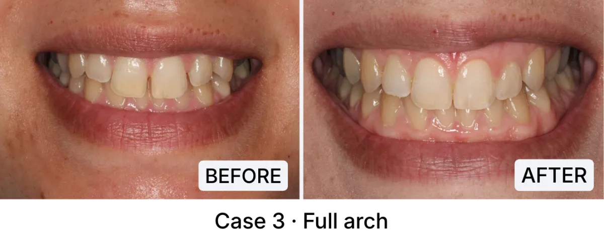 For more advanced cases — such as significant crowding, spacing, or bite correction — we offer Full arch lingual braces, digitally planned around your smile.